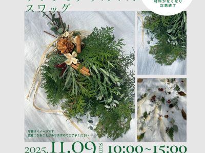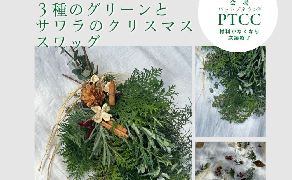 参加費:グリーンスワッグ2,500円、サワラのみスワッグ1,500円、ガーランド1,000円~