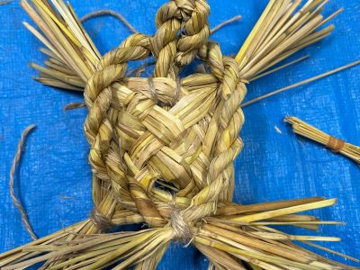 完成した作品には、藁の薫りと温もりがやさしく残ります。