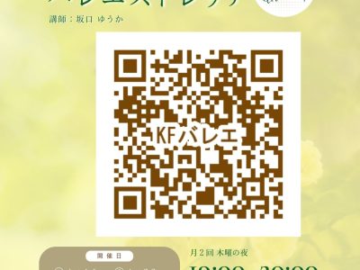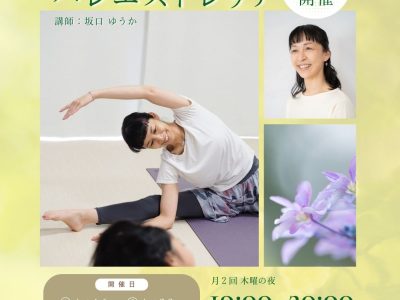 持ち物:ヨガマット(あれば)、飲み物、タオル、バレエシューズ(なくても大丈夫です)