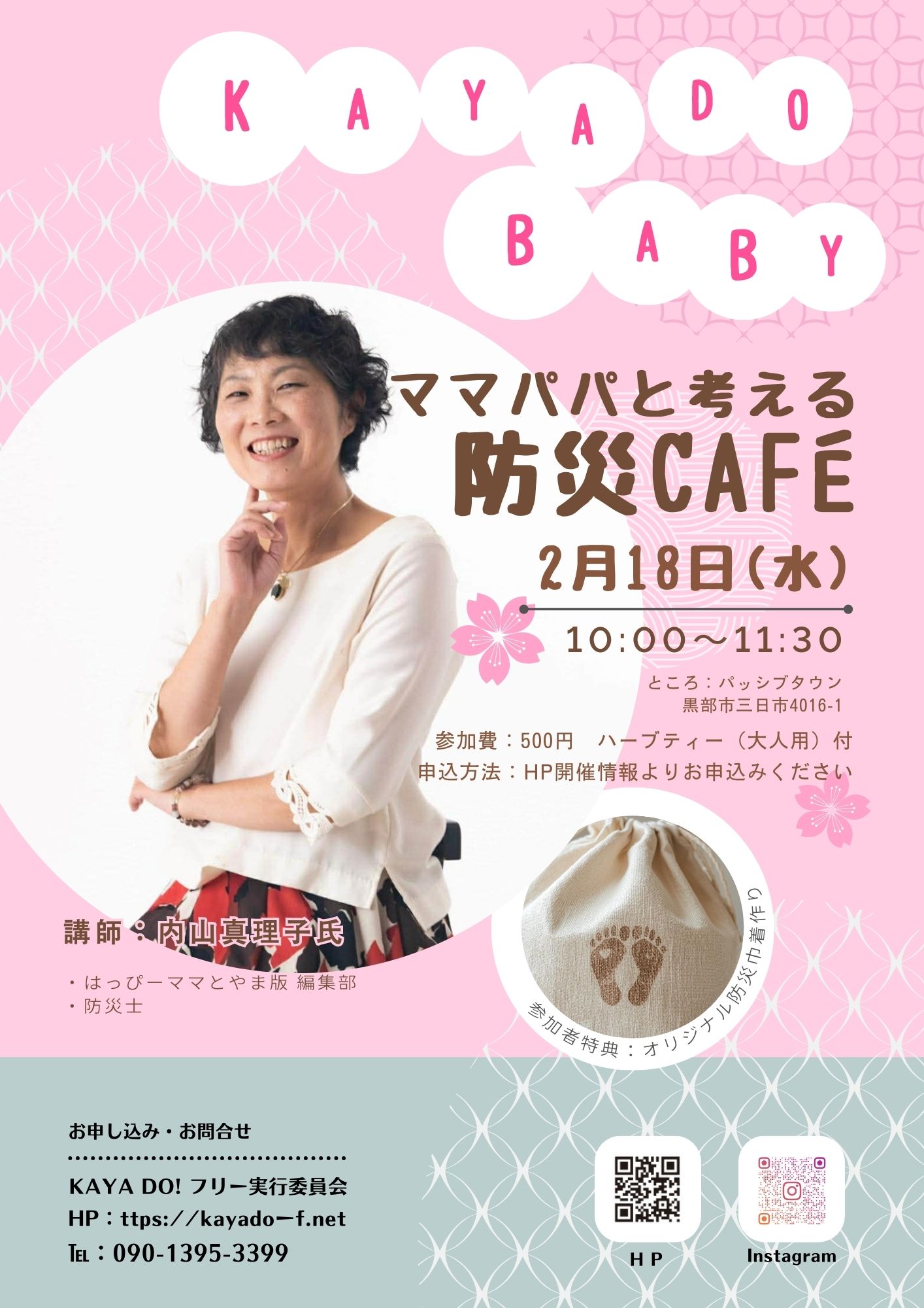 オリジナル防災巾着作りのワークショップも同時開催